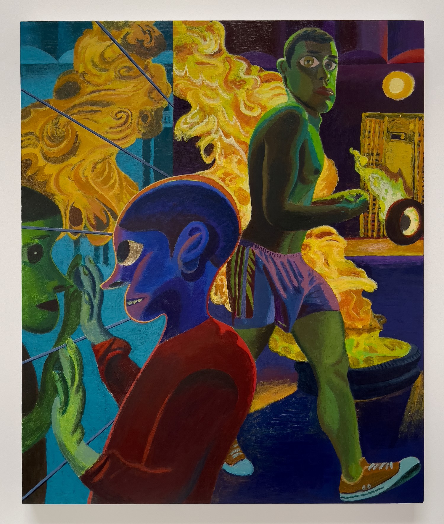 Morteza Khakshoor works with a range of subjects, but it’s his attention to the male—in all his foibles, struggles, and pathos—that remains a salient feature of his output. As frequent protagonists in his paintings, like all of his subjects, they result from circuitous paths through found images and memories, seen and remembered, or invented from whole cloth. His consumption of these images feed into his daily drawing practice, which in turn, metabolizes disparate information into schema for paintings at once playfully tragic and colorfully dark.