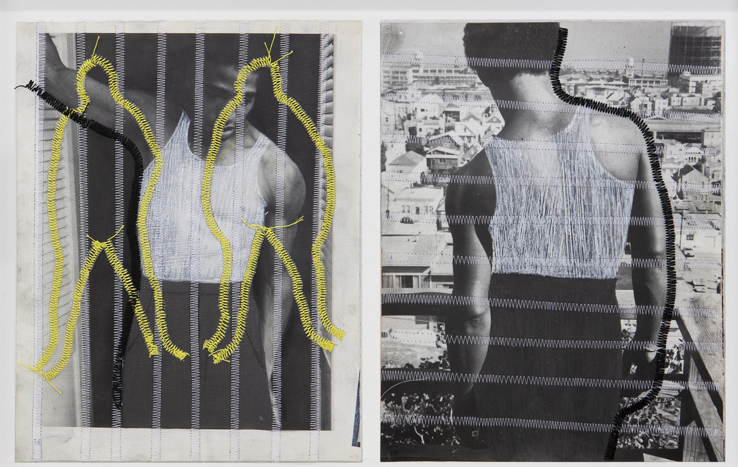 To tailor a garment by “rock of eye” is to rely on the drape in the fitting process—that is, to rely on experience over mathematical measurement. Draping is a kind of drawing in space: a freehand, an intuition, a trust of materials. Troy Montes-Michie: Rock of Eye, the artist’s first museum solo exhibition, brings together collages, drawings, sculptures, and installations that draw the contours of body and place. It begins with, and departs from, his past assemblages and collages that center magazine images of the Black male body and trace the social history and form of the zoot suit, a garment at the center of the 1943 attacks primarily on Mexican American, African American, and Filipino American youth in Los Angeles known as the Zoot Suit Riots. Montes-Michie was born in El Paso, Texas, and his practice reflects his experience growing up along the United States and Mexico border.