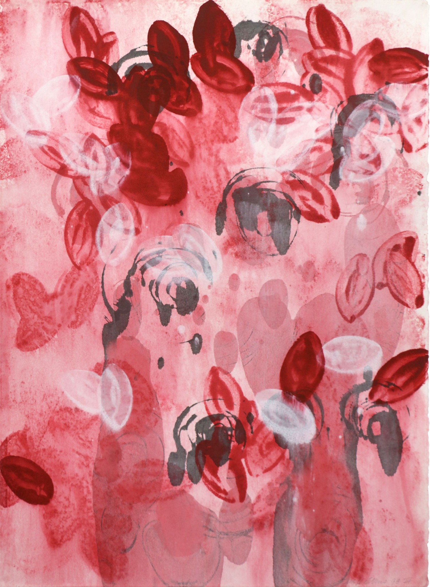 This form of temporal suspension is similarly articulated through the abstract compositions of Katano. Katano describes that, while the works may feel “organic,” they are not meant to emulate “nature”. Katano’s monoprints act as a form of archival, memorializing his own physicality as he paints. The works articulate a sense of movement and ephemerality that also manage to encapsulate time.
