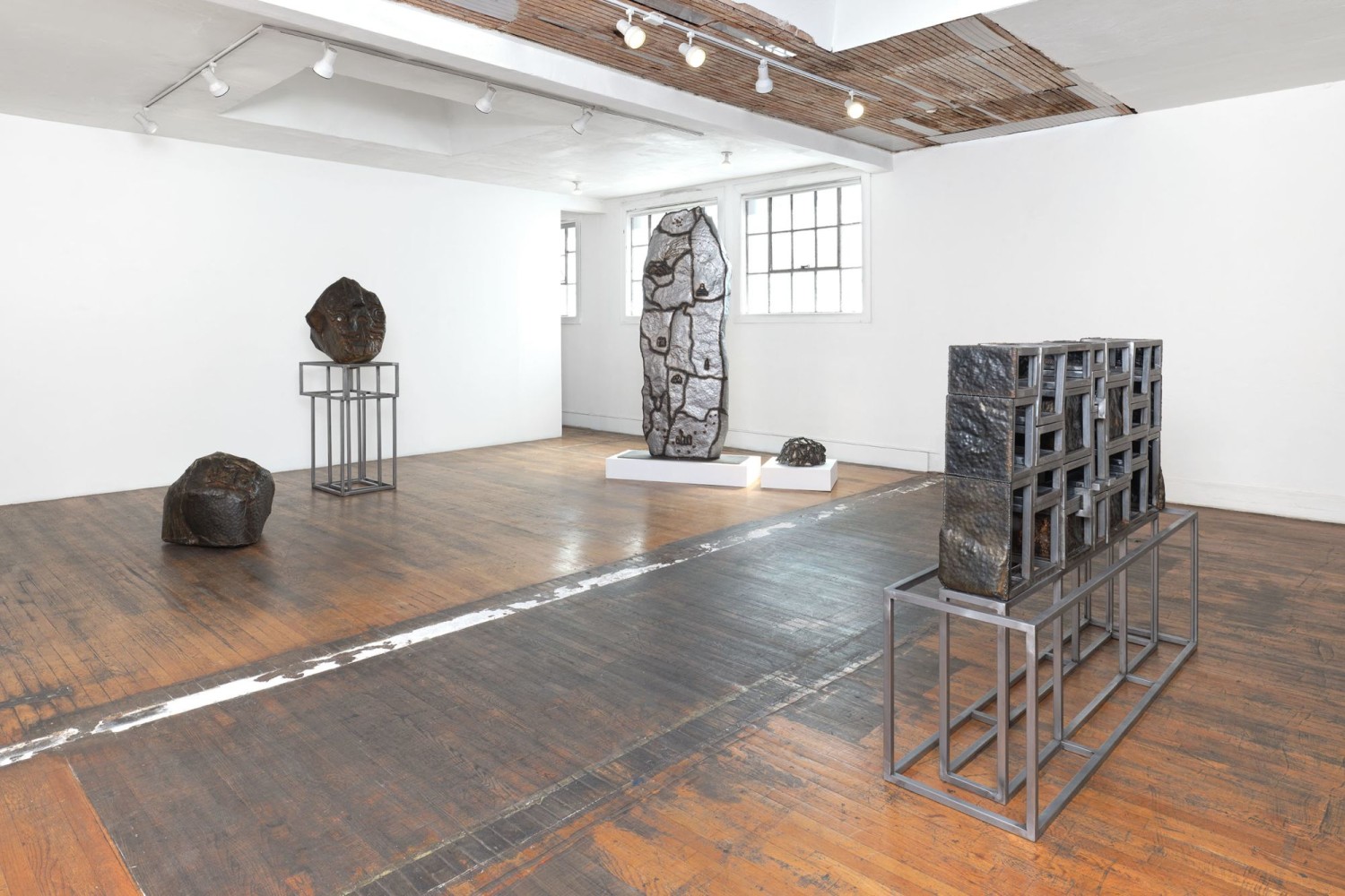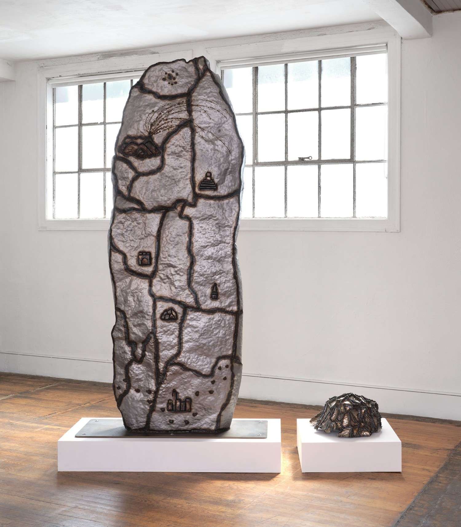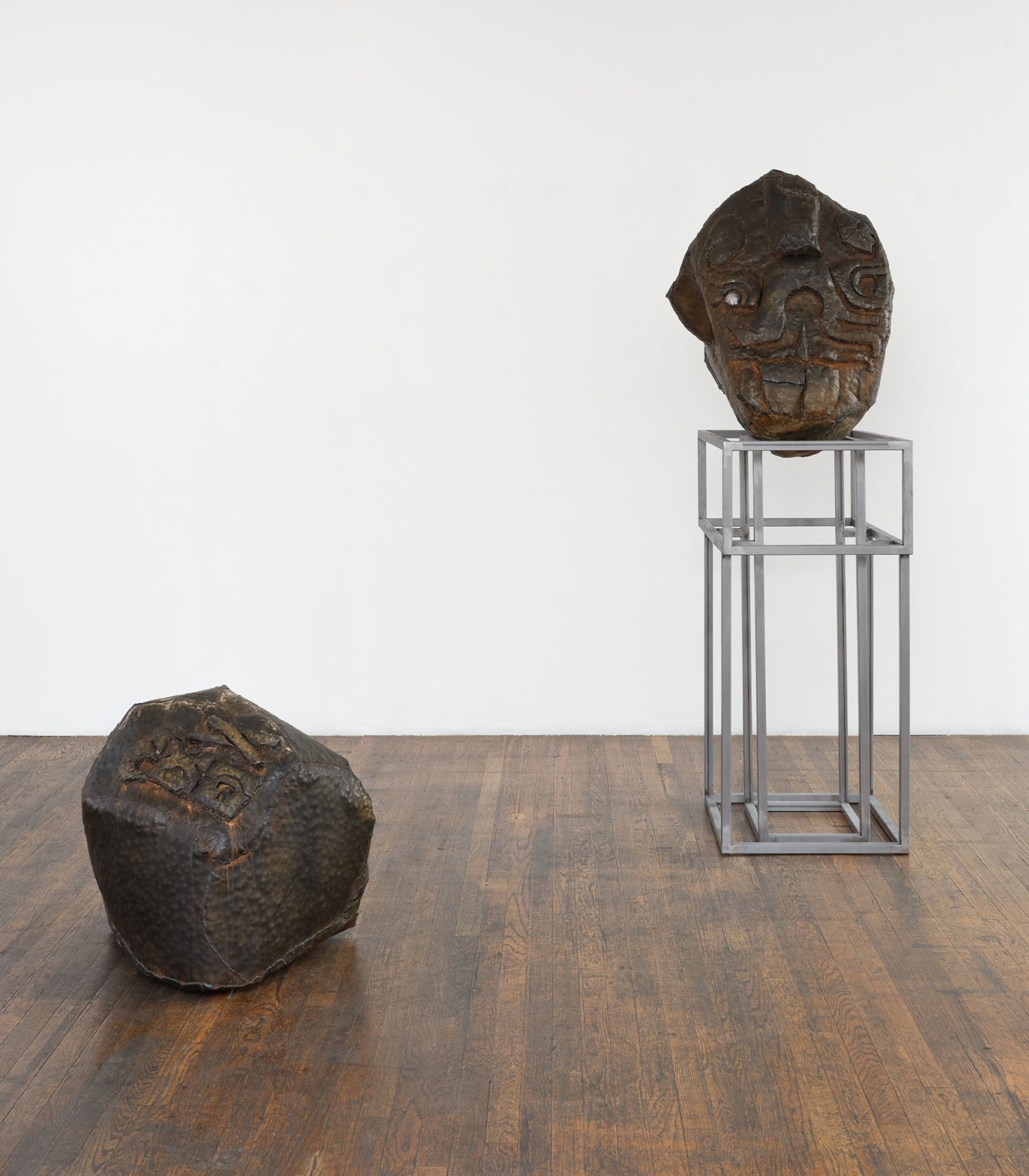 One eye yes, one eye no, Beatriz Cortez’s first solo exhibition with Commonwealth and Council, examines the Earth's movement and that of its inhabitants. Through steel constructions of existing and imagined objetos antiguos, Cortez proposes a shifting world predicated on the ceaseless circulation and transmutation of matter through vehicles such as volcanic eruptions and traveling meteors. By invoking these flows, Cortez asserts that migration is a geological constant and that these fugitive and self-organizing particles comprise all matter, visible in chance condensations like evidentiary bones—a living foundation for the earth. For Cortez these particulate tectonics align with conceptions of the underworld, a spirit world outside of human access or comprehension.
