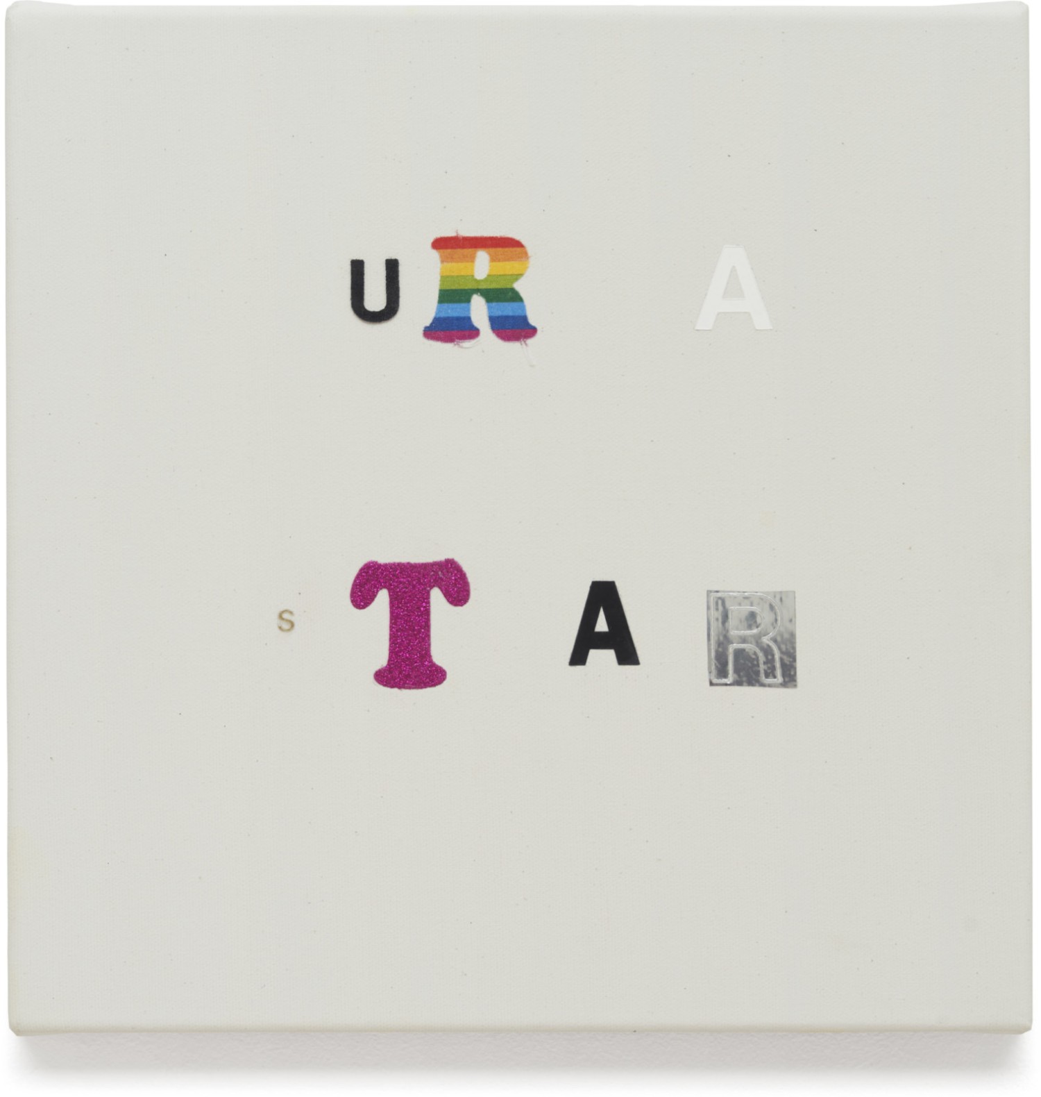 Several included works challenge traditional notions of painting. In Tron 1 (orange Pantone 151) (1999), Michel Majerus pairs a wall painting with a silkscreened canvas featuring the likeness of a German hacker who died a suspicious death in 1998 alongside a promotional image from the 1982 movie Tron. Wade Guyton’s new painting blurs technology and everyday life where analog drips are juxtaposed with printed ones. Evoking a punkish DIY attitude with her cut-and-paste methods, Maggie Lee’s “vintage paintings” take the notion of analog even further.