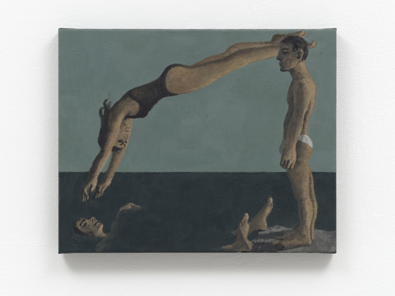 Lenz Geerk’s third solo show with the gallery is a deeply psychological exploration of the complexity of desire. Simmering tension permeates every work. Illicit relationships unfold on borrowed time against the sun-drenched light of summer. Geerk explores the shifts from attachment to separation, between closeness and distance, and fuses perception with touch by suggesting an edge that is loath to reveal itself completely. We wonder about, then question, what each relationship means.
